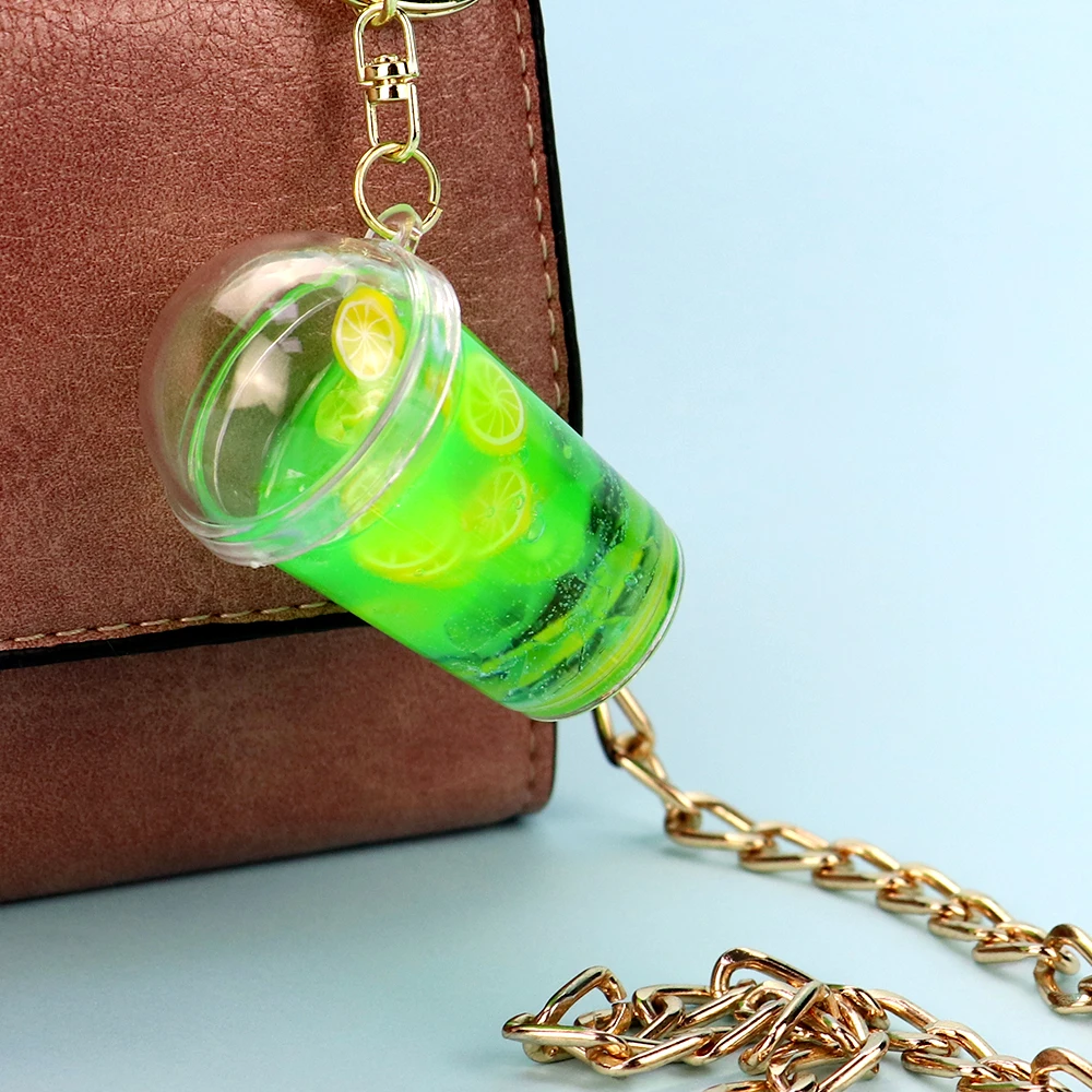 Refreshing Summer Drinking Fruit Tea Keychains Cute Jelly Boba Milk Tea